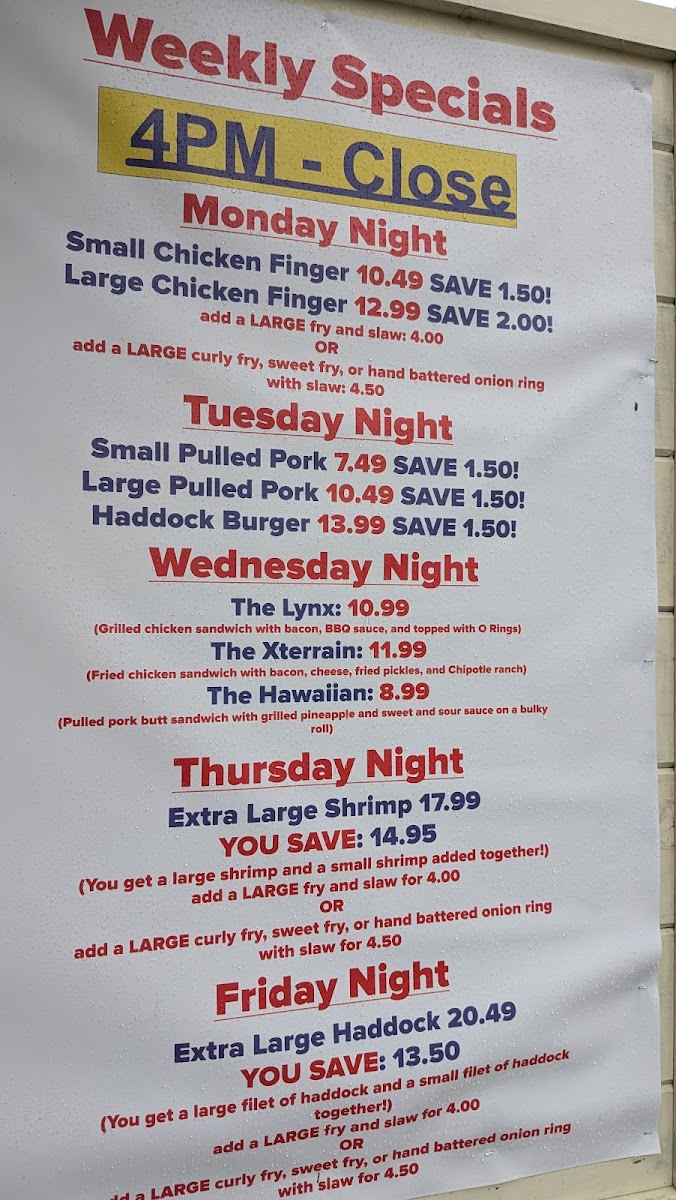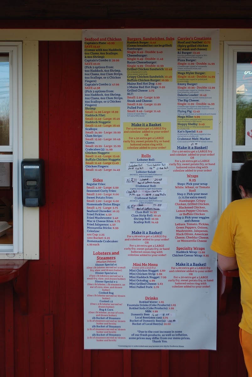 Introducing the menu at Carrier's Mainely Lobster is a delightful experience for seafood lovers in Bucksport, Maine. Located just off ME-46, this charming eatery specializes in fresh local catch, particularly their signature lobster dishes. The menu features a variety of options, from the classic lobster rolls to hearty meals like the Captain's Combo, which includes shrimp and clams, making it a perfect choice for family outings.